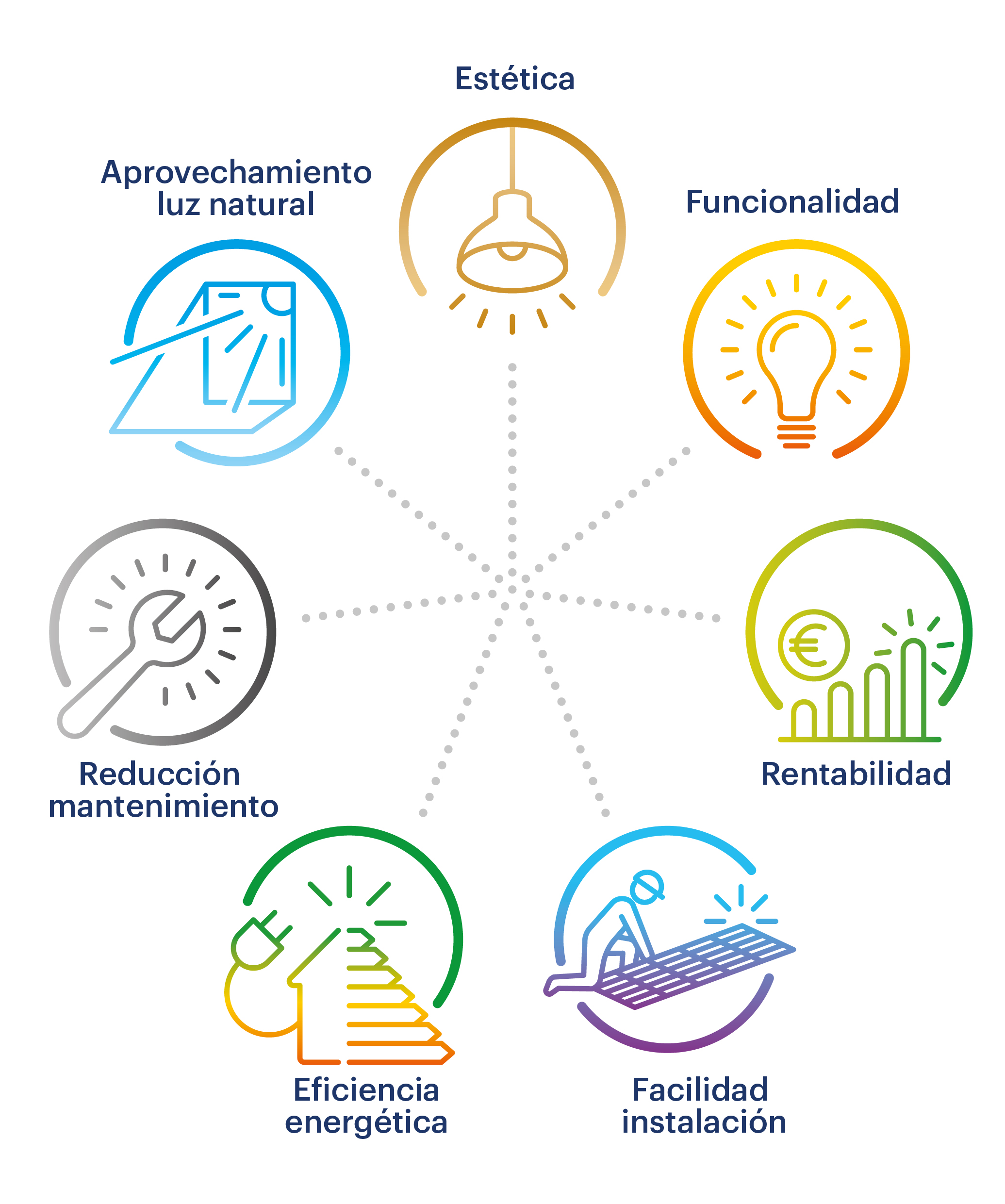 En nuestros estudios de iluminación tenemos en consideración todas las variables que influyen en el proyecto para dar con la solución que las optimice consiguiendo a la vez una armonía entre ellas: Facilidad instalación, Reducción mantenimiento...